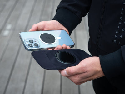 3. Schieben Sie Ihr Handy in die Hülle, magnetisieren Sie sie an der Halterung (achten Sie darauf, dass sie zentriert ist) und los geht's!